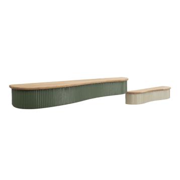 Comodino in legno bianco con piano e inserti in legno marrone dal design arrotondato.finemente decorato con linee in rilievo. comp...
