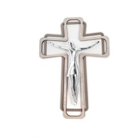 Cristo crocifisso stilizzato argento su croce legno 33x46 cm Femiano