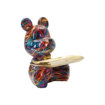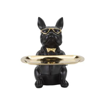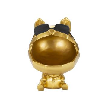 Simpatica statuetta a forma di cane con occhiali da sole e un papillon dorato dal design ispirato ai cartoon. con le zampe sostien...
