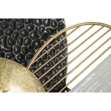 Pannello decorativo 3d da parete in metallo e legno dalle forme astratte e impreziosite da eleganti foglie.
