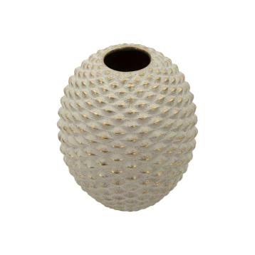 Vaso in ceramica bianca elegantemente decorato con delle sfere.