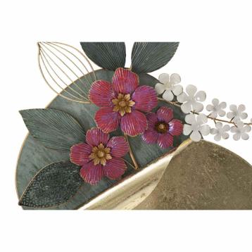 Pannello decorativo 3d da parete in metallo composto da fiori colorati e figure geometriche in un'elegante cornice rotonda.