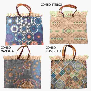 Borsa mare con interno in tessuto decorato e chiusura a cerniera.