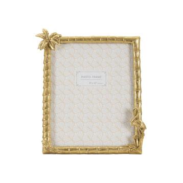 Cornice rettangolare da appoggio in resina dal design che ricorda le canne di bamboo e improziosita da un fiore e un fenicottero. ...