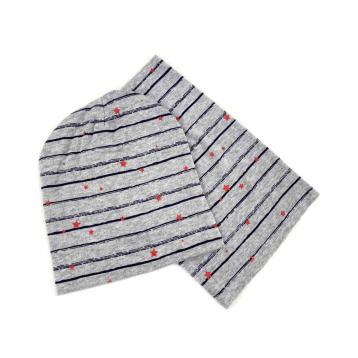 Set bimbo sciarpa e cappello in tessuto leggero elastico con stelline e righe.