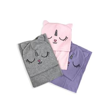 Set bimba cappello e scaldacollo in tessuto leggero con gattino unicorno.