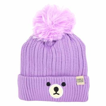 Morbido set invernale composto da berretto con pon pon, che presenta un orsetto ricamato, e sciarpa coordinata.