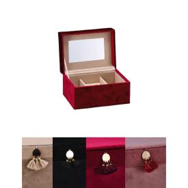 Elegante portagioie a forma di cassettiera in velluto, disponibile in colori assortiti.