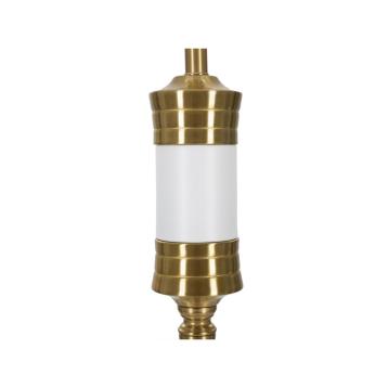 Piantana in metallo dorato con elegante decorazione bianca e con base rotonda. completa di paralume in tessuto bianco con bordi do...