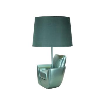 Lampada da tavolo in resina turchese a forma di poltrona ispirata agli anni '70. completa di paralume in tessuto turchese.