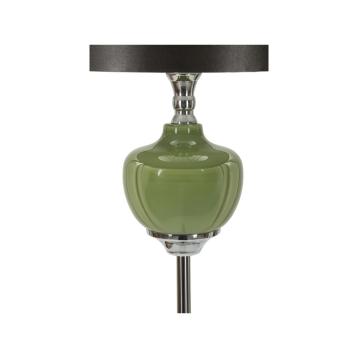 Piantana con base di vetro verde e paralume in velluto nero,sprigiona un'atmosfera sofisticata e rilassante, perfetta per illumina...