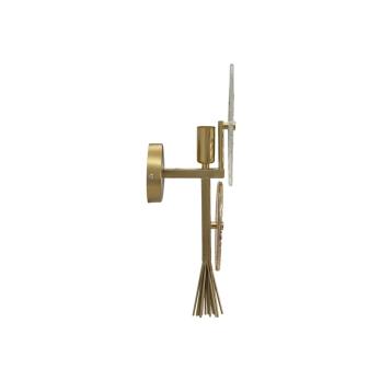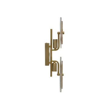 Lampada da parete in vetro lavorato e metallo dorato composta da due figure circolari.