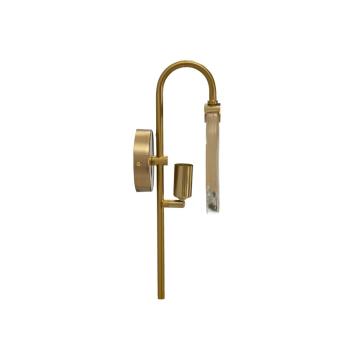 Lampada da parete con 2 punti luce in metallo dorato dalle linee semplici ed essenziali, impreziosita da eleganti paralumi in vetr...
