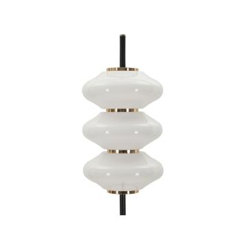 Applique in metallo nero con sfera in vetro bianco. le linee essenziali si sposano con l'eleganza del nero per creare un design un...
