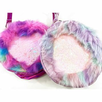 Tracolla con pelliccia e cuore di paillettes