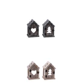 Lanterna portacandela natalizia in legno 16x12 cm  h.22 cm