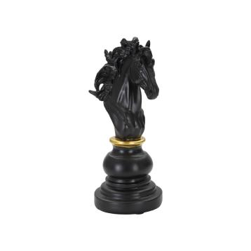 Cavallo degli scacchi nero con eleganti decorazioni dorate.
