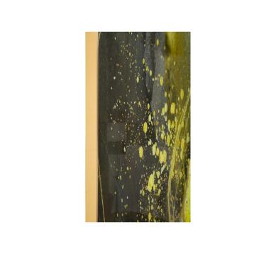 Pannello decorativo in vetro con eleganti decorazioni astratte. il pannello è racchiuso in una semplice cornice di metallo dorato...