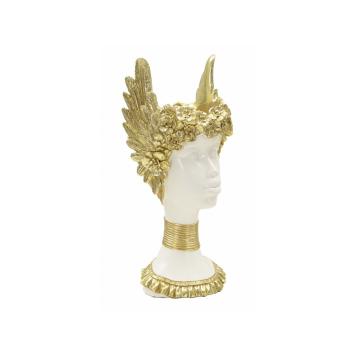 Scultura di busto di donna che richiama l'arte classica elegantemente decorata con ali dorate.