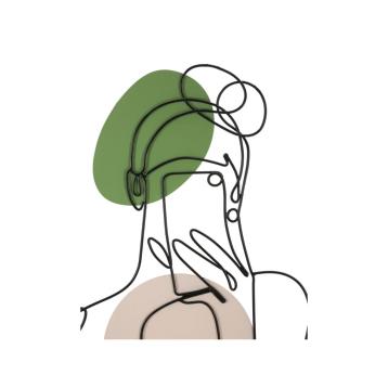 Pannello decorativo 3d da parete in metallo e legno raffigurante una donna seduta di spalle.