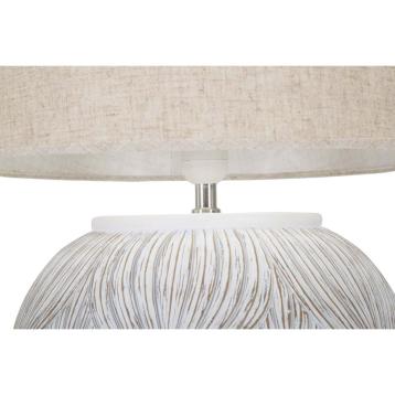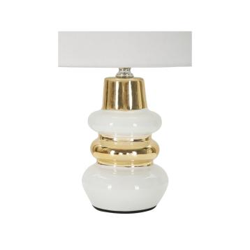 Lampada da tavolo in ceramica bianca e dorata decorata con eleganti foglie completa di paralume in tessuto bianco con bordi dorati...