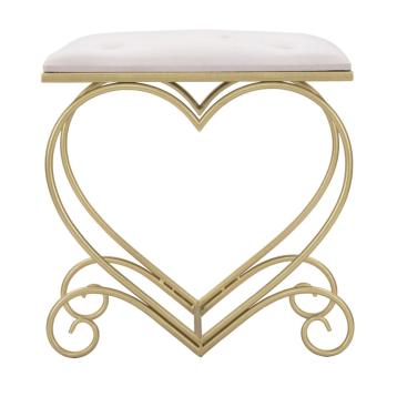 Elegante sgabello in metallo dorato con tessuto imbottito rosa dall'originale design a forma di cuore con riccioli. il metallo dor...