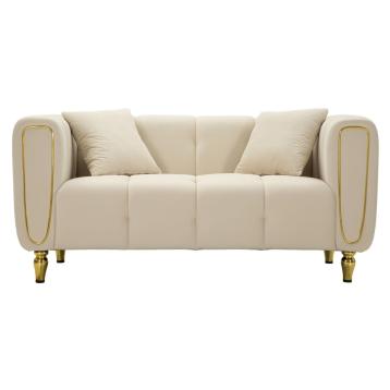 Divano due posti crema con gambe dorate da assemblare, rivestito in velluto trapuntato. ideale per ambienti moderni e raffinati, a...