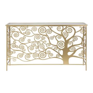 Elegante console in metallo dorato con piano in vetro a specchio dalle linee morbide e tondeggianti. eleganza e design si fondono ...