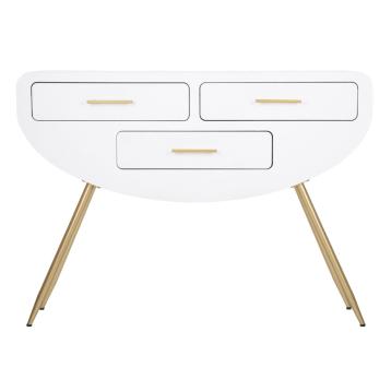 Console in legno bianco dalle linee arrotondate che richiamano il modernariato degli anni '70. completa di 3 cassetti. gambe in me...