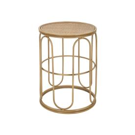 Tavolinetto rotondo in metallo dorato con piano nero. la parte superiore è finemente decorata con intrecci per donare un tocco di...