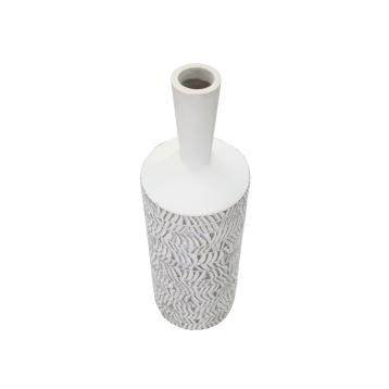 Vaso in ceramica dal design morbido e sinuoso con eleganti decorazioni in rilievo.