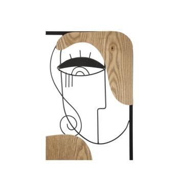 Pannello decorativo 3d da parete in metallo e legno raffigurante dei volti dai tratti che richiamano l'arte cubista.