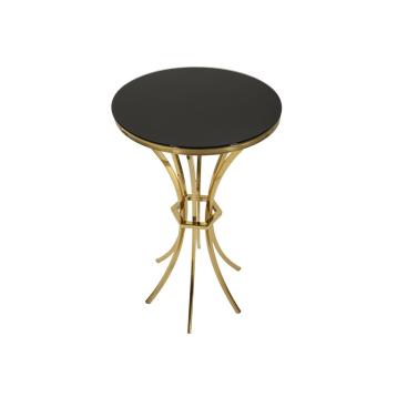 Tavolinetto rotondo in metallo dorato dalle linee semplici ed essenziali con piano in vetro a specchio.