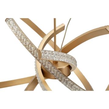 Lampadario in metallo dorato dalle linee semplici ed essenziali con 5 punti luce in metallo dorato e vetro.