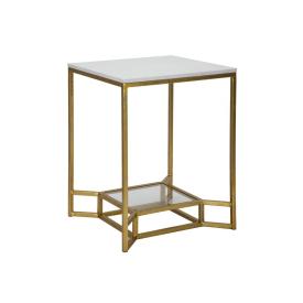 Tavolinetto 2 ripiani flowers, struttura dorata decorata con dettagli floreali e doppi ripiani effetto marmo. eleganza romantica p...