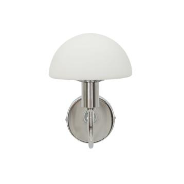 Lampada da parete in metallo argentato con elegante cuore e completa di paralume in vetro bianco opaco.