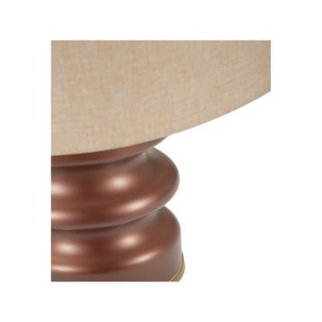 Lampada da tavolo in metallo dorato con base rotonda dal design ispirato alle foglie di palma.
