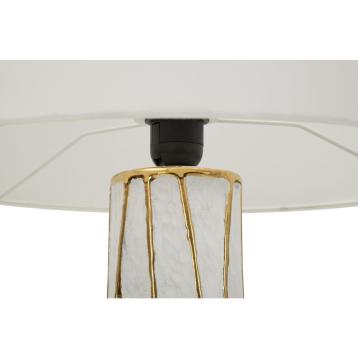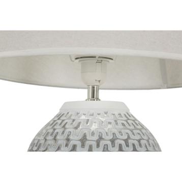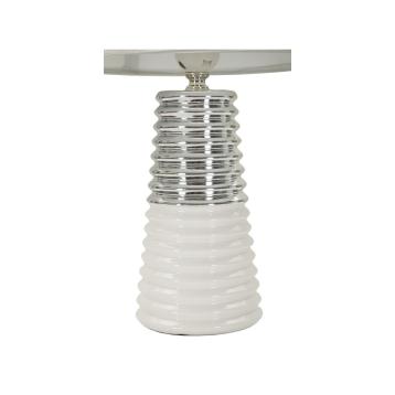 Lampada da tavolo in ceramica bianca e argentata elegantemente decorata con cerchi concentrici. completa di paralume in tessuto ar...