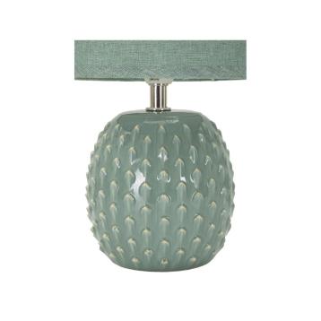 Lampada da comodino con base turchese e decorazioni in rilievo, ideale per un tocco di eleganza e stile moderno in camera da letto...