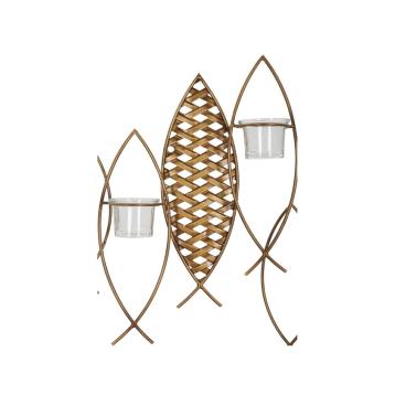 Portacandele da parete in metallo con linee che richiamano dei pesci decorati e colorati. può contenere 4 candele.