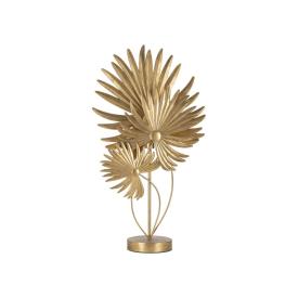 Lampada da tavolo in metallo dorato con 2 punti luce e paralume composto da piume rosa.