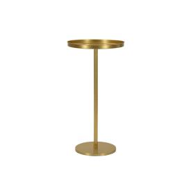 Semplice tavolo da bar rotondo in metallo dorato e piano in vetro a specchio. design essenziale, lineare e pulito per donare con s...