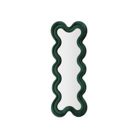 Specchio da parete con cornice in legno rivestita in tessuto dalle forme morbide e sinuose.