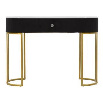 Console da muro elegante e sofisticata in simil pelle trapuntata, con gambe dorate e un pomello a forma di brillante per un tocco ...