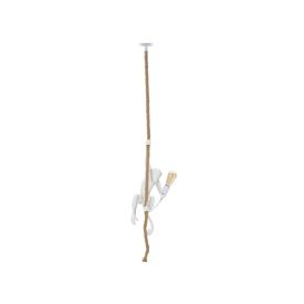 Lampada da tavolo in resina dorata a forma di gorilla che tiene in mano la lampadina.
