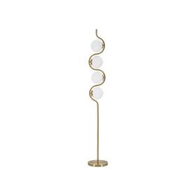 Piantana in metallo dorato con elegante decorazione morbida e sinuosa completa di paralume composto da piume.