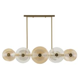 Lampada da tavolo in metallo dorato con base rotonda dal design ispirato alle foglie di palma.