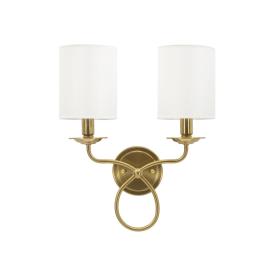 Lampada da parete in metallo dorato e vetro satinato dalla forma geometrica e regolare.