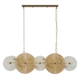 Lampadario rotondo in metallo e corda con 6 punti luce dal design semplice che richiama la vita nei casali di campagna.