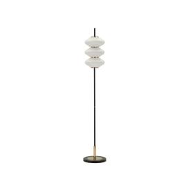 Piantana in metallo dorato con sfera in vetro bianco. le linee essenziali e minimali si sposano con l'eleganza dell'oro per creare...